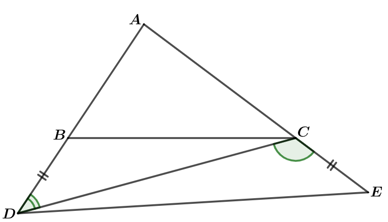 Cho \(\Delta ABC\) nhọn. Trên tia đối của tia \(BA\) lấy điểm \(D\) và trên tia đối của tia \(CA\)