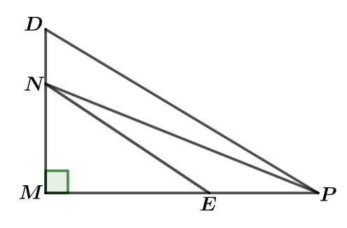 a) Tìm đoạn ngắn nhất trong các đoạn \(NM,\,NE,\,NP.\)