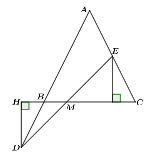 Hai tam giác: tam giác cân \(ABC\) và tam giác \(ADE\) có chung góc ở đỉnh \(A.\) Biết \(AE + AD = AB + AC.\) Chứng minh \(BC < DE.\)