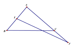 Gọi I là trung điểm của AB, J là điểm nằm trên đường thẳng AC thỏa mãn điều kiện \(\overrightarrow {JA} = 3\overrightarrow {JC} \Leftrightarrow \overrightarrow {JA} - 3\overrightarrow {JC} = \overrightarrow 0 \)