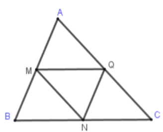 Cho tam giác ABC có M, N, Q lần lượt là trung điểm của AB, BC, CA. Khi đó vectơ \(\overrightarrow {AB}