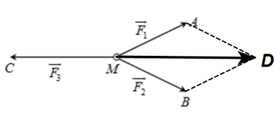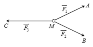 Cho ba lực \(\overrightarrow {{F_1}} = \overrightarrow {MA} \), \(\overrightarrow {{F_2}} = \overrightarrow {MB}
