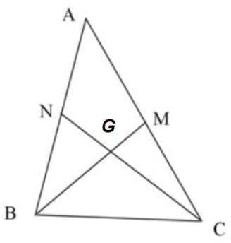Cho tam giác ABC có BC = a, \(\angle A = \alpha \) và hai đường trung tuyến BM và CN vuông góc với nhau. Tính diện tích tam giác ABC theo a và \(\alpha .\)
