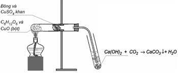 Cho hình vẽ thí nghiệm phân tích tổng hợp chất hữu cơ C6H12O6: