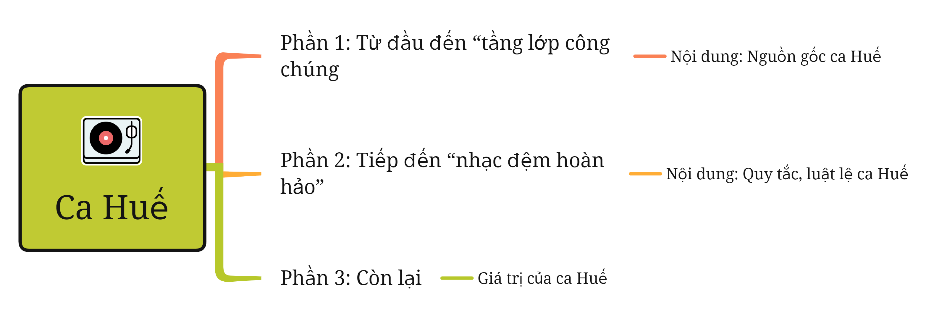 Hãy chia bố cục của văn bản “Ca Huế” bằng hình thức sơ đồ tư duy.