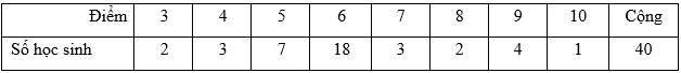 Cho bảng số liệu ghi lại điểm của 40 học sinh trong bài kiểm tra 1 tiết môn toán