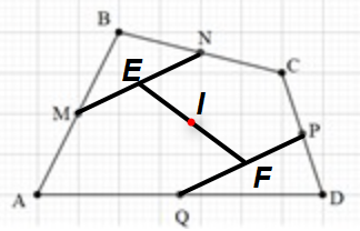 Cho tứ giác ABCD. Biết M, N, P, Q lần lượt là trung điểm của các cạnh AB, BC, CD, DA. Dựng điểm