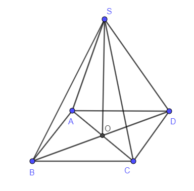 Cho hình chóp S.ABCD có SA = SB = SC = SD =\(\sqrt 5 \). ABCD nội tiếp đường tròn có bán kính \(r = 1\).