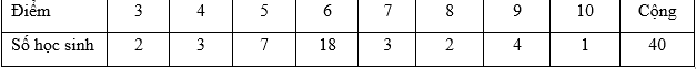 Cho bảng số liệu ghi lại điểm của 40 học sinh trong bài kiểm tra 1 tiết môn toán