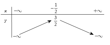Bề lõm đồ thị quay xuống, có đỉnh \(I\left( {\dfrac{{ - 1}}{2},\dfrac{3}{2}} \right)\)