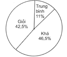 Quan sát biểu đồ và ứng với mỗi học lực thì tỉ lệ là bao nhiêu %. Từ đó tìm số học sinh giỏi, khá, trung bình.