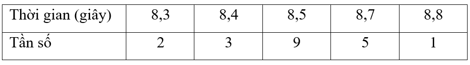 Thời gian chạy 50m của 20 học sinh được ghi lại trong bảng dưới đây: