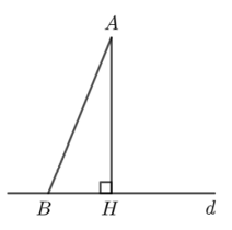 Cho đường thẳng \(d,\) điểm \(A\) không thuộc \(d,\) kẻ \(AH\) vuông góc với \(d\) ( \(H\) thuộc \(d\)), điểm \(B\) bất kì thuộc \(d\) ( \(B\) khác \(H\) )
