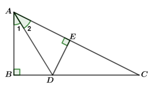 Cho \(\Delta ABC\) vuông tại \(B,\) có \(AD\) là tia phân giác của \(\angle BAC\,\left( {D \in BC} \right).\)