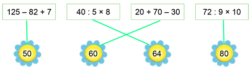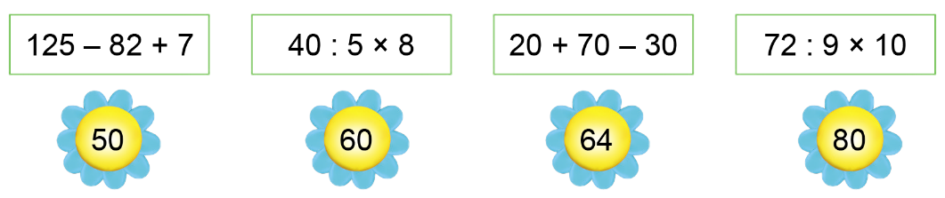 Lần lượt tính giá trị của các biểu thức rồi nối.