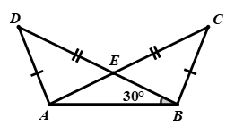 Cho hình vẽ bên dưới, biết rằng \(AD = BC,AC = BD\) và \(\angle ABD = {30^0}\), hãy tính số đo của góc \(DEC.\)