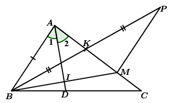 Cho \(\Delta ABC\) có \(AB < AC.\) \(AD\) là tia phân giác của \(\angle BAC.\) Trên cạnh \(AC\) lấy điểm \(M\) sao cho \(AM = AB.\)