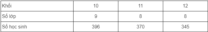 Bảng sau thống kê số lớp và số học sinh theo từng khối ở một trường Trung học phổ thông.