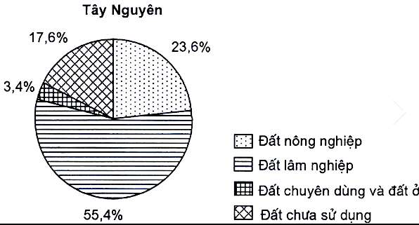Cho biểu đồ thể hiện diện tích sử dụng đất của Tây Nguyên.Cho biết ở Tây Nguyên loại