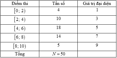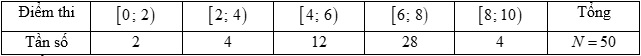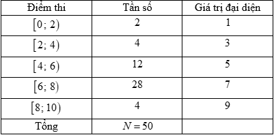 Hai lớp 10A, 10B của một trường THPT C đồng thời làm bài môn thi Toán theo cùng một đề. Kết quả thi được trình bày ở hai bảng sau: