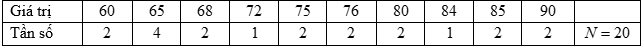 \(\begin{array}{*{20}{c}}{60}&{65}&{76}&{68}&{65}&{75}&{80}&{80}&{68}&{60}\\{65}&{90}&{90}&{85}&{65}&{72}&{75}&{76}&{85}&{84}\end{array}\)