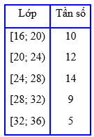 Tuổi các học viên của một lớp học Tiếng Anh tại một trung tâm được ghi lại ở bảng tần