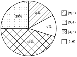 Biết rằng \(x,\,\,y\) thỏa mãn \({x^2} + {y^2} = 500\,\,\left( {x > 15} \right)\) . Khi đó, phương sai tương ứng với biểu đồ trên là