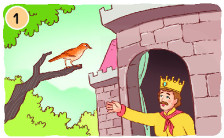 Đoạn kể sau tương ứng với bức tranh nào? Một hôm, có người tặng nhà vua một con hoạ mi