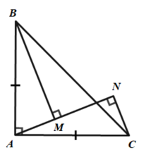 Cho tam giác \(ABC\) vuông tại \(A\) và \(AB = AC\). Qua \(A\) kẻ đường thẳng \(d\) cắt \(BC\). Vẽ \(BM,CN\) vuông góc với \(d\) với \(M,N \in d\). Chọn đáp án sai: