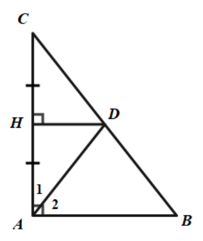 Cho \(\Delta ABC\) vuông tại \(A\). Đường trung trực của đoạn thẳng \(AC\) cắt \(AC\) tại \(H\), cắt \(BC\) tại \(D\). Nối \(A\) và \(D\).