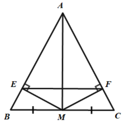 Cho \(\Delta ABC\) cân tại \(A\), \(M\) là trung điểm của \(BC\). \(ME\) vuông góc với \(AB\), \(MF\)