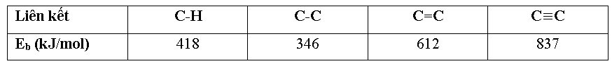 Biến thiên entanpi chuẩn của một phản ứng hóa học, kí hiệu là ∆rH0298, chính là nhiệt tỏa ra hay thu vào kèm theo phản ứng đó ở điều kiện chuẩn. Nếu giá trị ∆rH0298 < 0 thì phản ứng tỏa nhiệt, nếu giá trị ∆rH0298 > 0 thì phản ứng thu nhiệt. Khi các chất trong phản ứng đều là chất khí, có thể tính ∆rH0298 bằng cách lấy tổng năng lượng liên kết (Eb) của các chất phản ứng trừ đi tổng năng lượng liên kết (Eb) của các chất sản phẩm. Cho giá trị trung bình của một số năng lượng liên kết ở điều kiện chuẩn