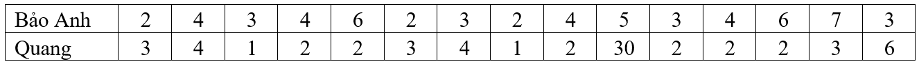 Bảo Anh và Quang ghi lại số tin nhắn điện thoại mà mỗi người nhận được từ ngày 1/11 đến ngày 15/11 ở bảng sau: