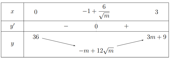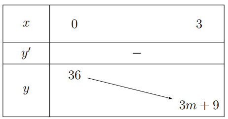 Biết rằng giá trị nhỏ nhất của hàm số \(y = mx + \dfrac{{36}}{{x + 1}}\) trên [0;3] bằng 20. Mệnh