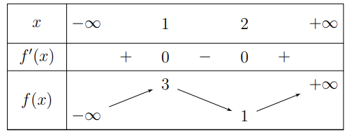 Cho hàm số bậc ba f(x) có bảng biến thiên như hình vẽ. Tổng số đường tiệm cận đứng và