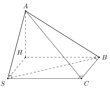 Gọi H là hình chiếu vuông góc của A lên (SBC) => HSCB là hình chữ nhật.