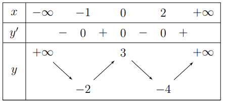 Cho hàm số y = f(x) liên tục trên \(\mathbb{R}\), có bảng biến thiên như hình vẽ. Có bao nhiêu giá