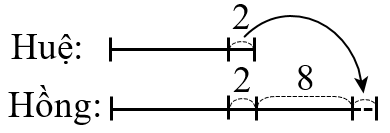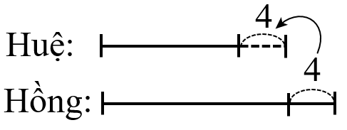 Hồng và Huệ mỗi bạn có một số que tính. Nếu Hồng cho Huệ 4 que tính thì hai bạn có số que