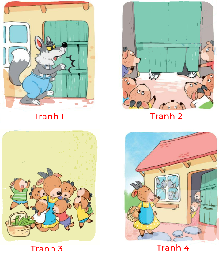 Đọc lại câu chuyện “Dê con nghe lời mẹ” và sắp xếp các bức tranh theo các sự việc xảy ra trong câu chuyện.