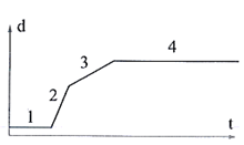 Hình bên là đồ thị độ dịch chuyển theo thời gian (4 giai đoạn 1, 2, 3, 4) của ô tô chuyển động thẳng theo một hướng xác định. Ô tô đi với tốc độ lớn nhất trong giai đoạn nào?