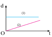 Cho đồ thị độ dịch chuyển-thời gian hai vật (1) và (2) như hình. Kết luận nào sau đây đúng?