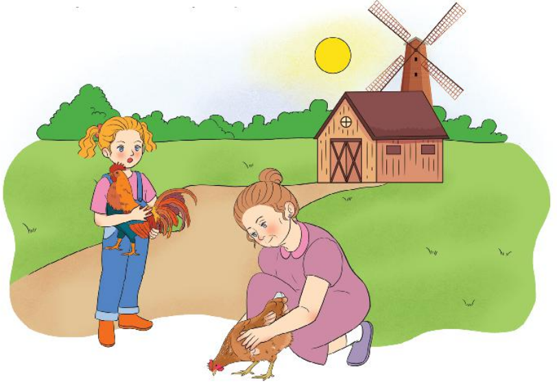 Một hôm, cô bé thấy nhà hàng xóm có con gà mái, cô bèn đổi gà trống lấy gà mái. Gà mái ngày ngày đẻ trứng.
