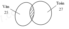 Đội tuyển thi học sinh giỏi của tỉnh X có 25 em thi Văn và 27 em thi Toán, trong đó có 18 em vừa thi Văn vừa thi Toán. Hỏi đội tuyển học sinh giỏi 2 môn Văn và Toán của tỉnh X có bao nhiêu em?