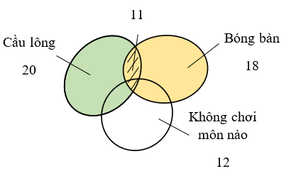 Lớp 5A có 20 bạn thích chơi cầu lông, 18 bạn thích bóng bàn. Trong số các bạn thích cầu lông