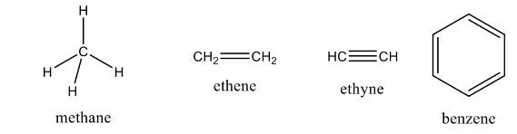 Cho 4 hiđrocacbon: metan, etilen, axetilen, benzen.