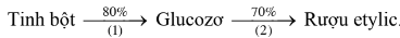Một loại gạo chứa 80% tinh bột được dùng để điều chế rượu etylic theo sơ đồ sau: