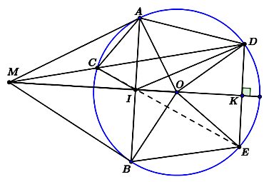 c) Gọi \(I\) là giao điểm của \(AB\) và \(MO\). Chứng minh tứ giác \(CDOI\) nội tiếp.