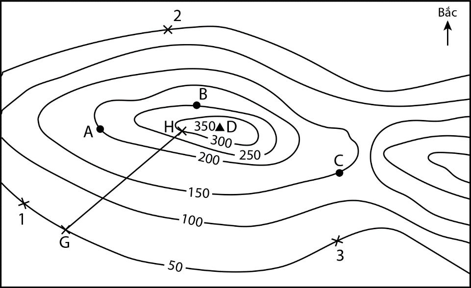 G – H là lát cắt địa hình của khu vực trên, hãy cho biết: