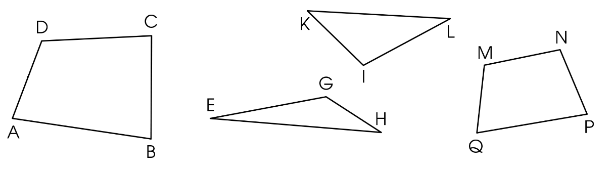 Hình tam giác có 3 cạnh, hình tứ giác có 4 cạnh.