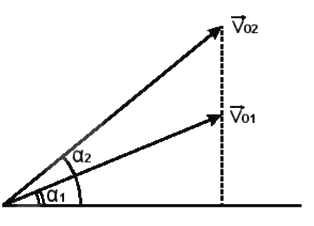 Hai vật được đồng thời ném từ mặt đất lên với vận tốc ban đầu như hình vẽ.
